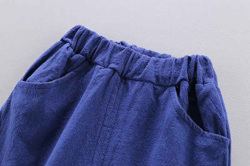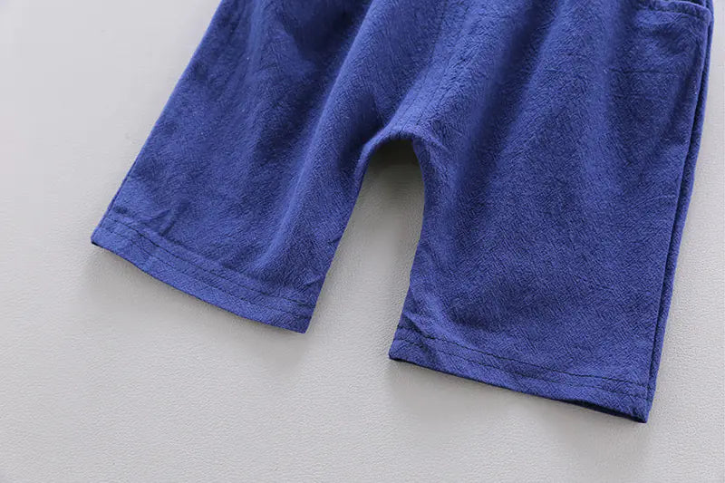 The outfit includes five-point pants that provide freedom of movement, allowing your child to run, jump, and explore without any restrictions. With its thin fabric, it's ideal for summer wear, keeping your little one cool and comfortable.