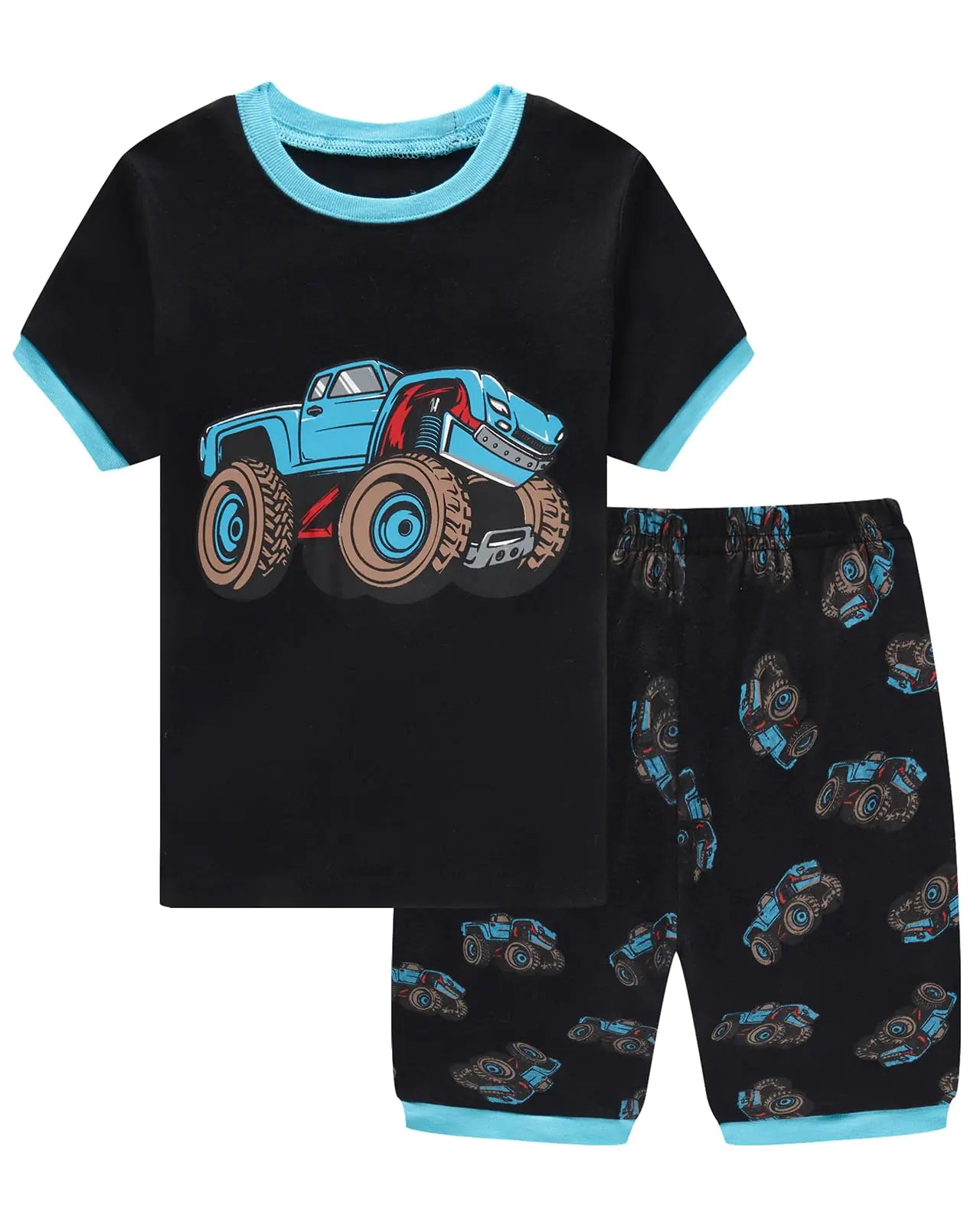 Little bety Boys Summer Shorts Pajamas Sets Cotton Pjs Toddler Boys Monster Car Sleepwear Size 10 Black